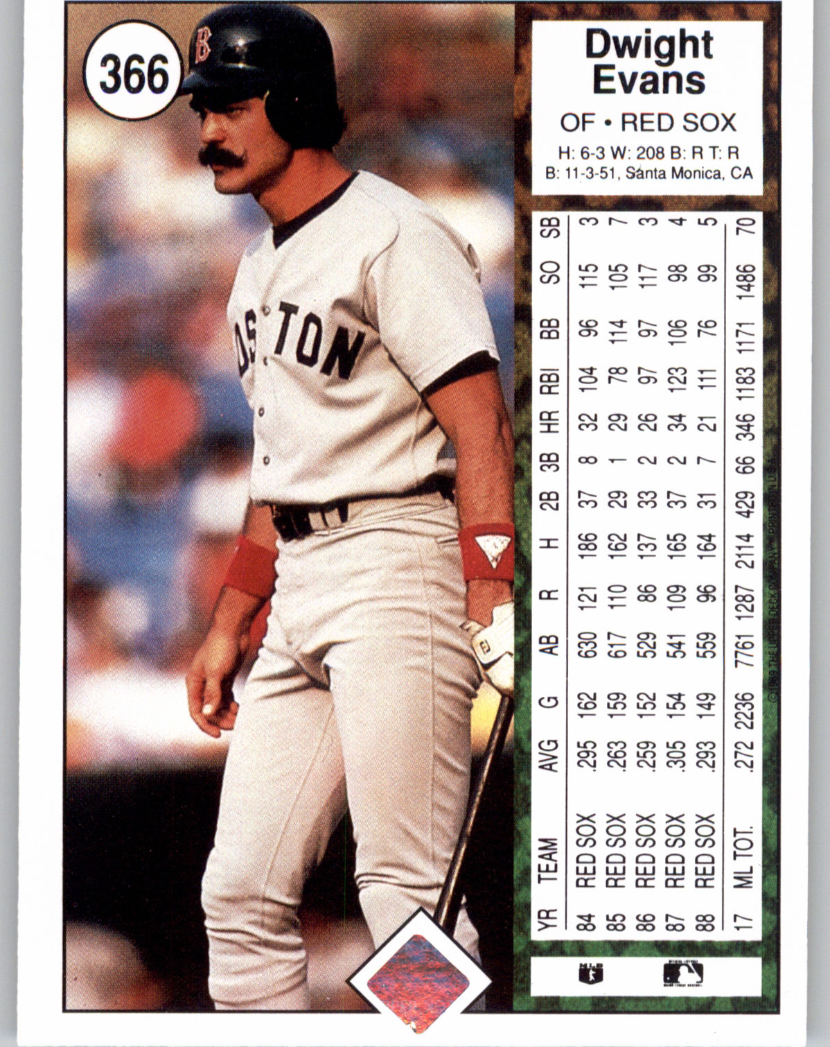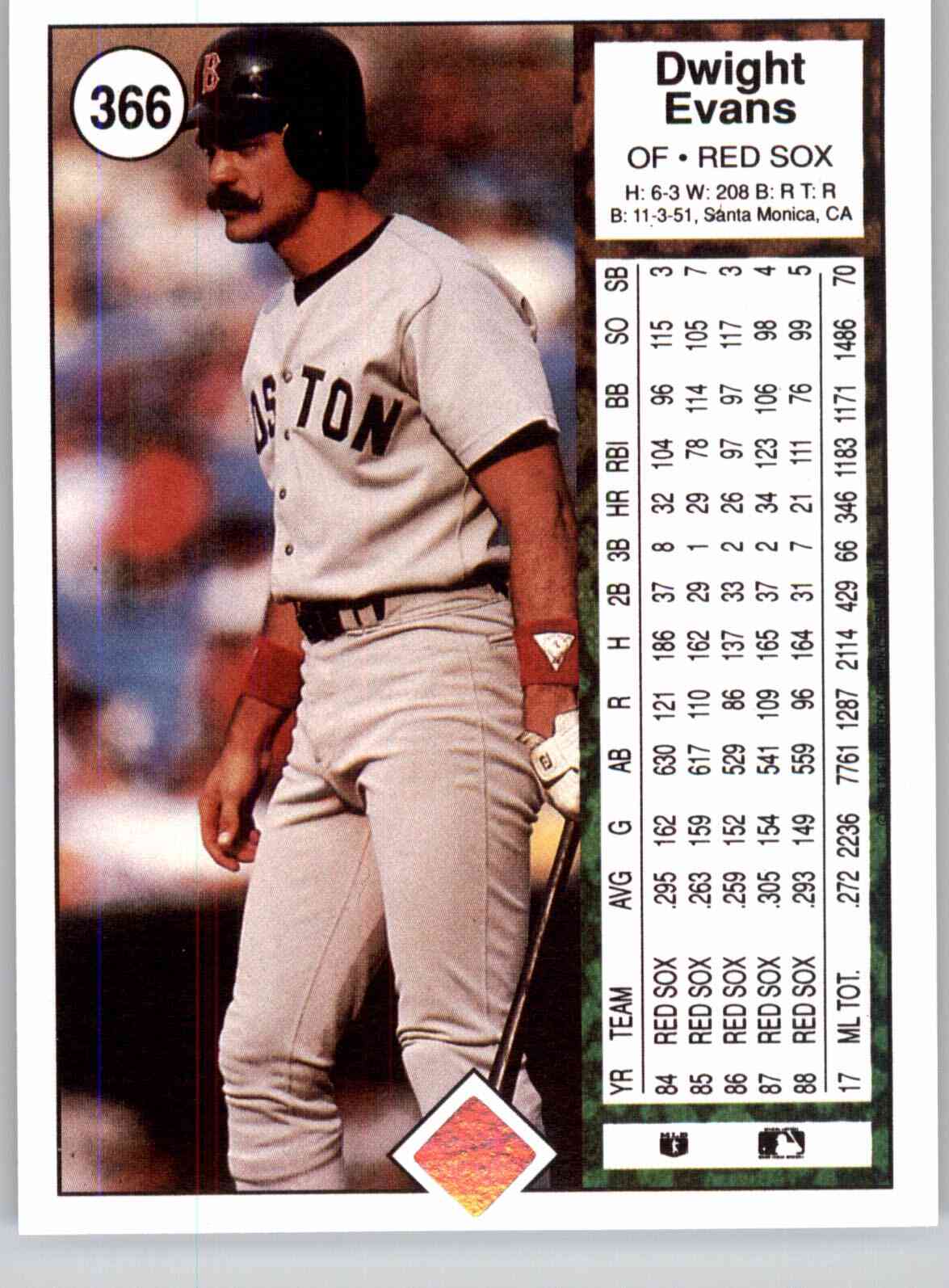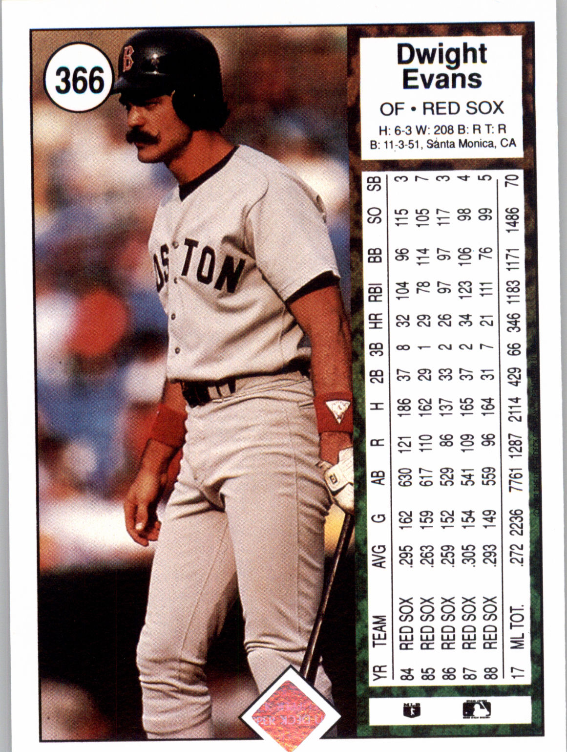 View large back image of 1989 Upper Deck 366 Dwight Evans